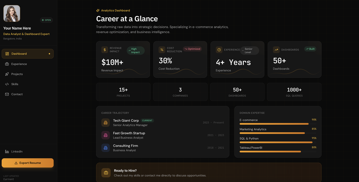 "Since switching to this dashboard portfolio, I received 4 interview calls in one week."